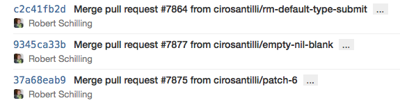 We recommend to commit early and often. Each time you have a functioning set of tests and code a commit can be made. The advantage is that when an extension or refactor goes wrong it is easy to revert to a working version. This is quite a change for programmers that used SVN before, they used to commit when their work was ready to share. The trick is to use the merge/pull request with multiple commits when your work is ready to share. The commit message should reflect your intention, not the contents of the commit. The contents of the commit can be easily seen anyway, the question is why you did it. An example of a good commit message is: "Combine templates to dry up the user views.". Some words that are bad commit messages because they don't contain munch information are: change, improve and refactor. The word fix or fixes is also a red flag, unless it comes after the commit sentence and references an issue number. To see more information about the formatting of commit messages please see this great blog post by Tim Pope.